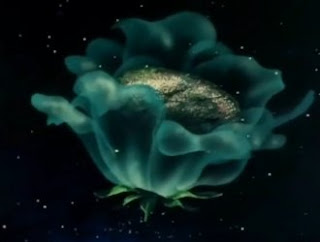 Tetsuro waking up and finding himself on another train, heading to another planet is quite a shock in the moment, but luckily it is a very short journey, a mere 4 hours away. Hanako, who looks rather haggard, has brought Tetsuro with her to pretend that he is her fiancĂ©. Picking Tetsuro is a rather odd choice; he is merely a 10 year old boy, so you’d think her parents would notice it. They don’t pick up on it at all. Perhaps their eyesight is really bad? In the TV adaption it is more clear that Hanako’s parents are really senile. Her mother clearly has bad eyesight and her father is really sick. There is an entire scene about them having a ceremony for Hanako and Tetsuro with guests who don’t even exist. Part of me wondered if the mother made it up and knew what she was really doing, but was trying to put things past Hanako’s father. It could have been both of them though. There is the comment from Maetel on how Hanako picked Tetsuro based on his improperly bathed smell. We don’t get to see much of Hanako, but like many side characters we meet it is rather depressing in a sense that she has worked hard for quite a while, with apparently not much to show for it and was never able to get married like her parents wanted.